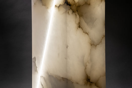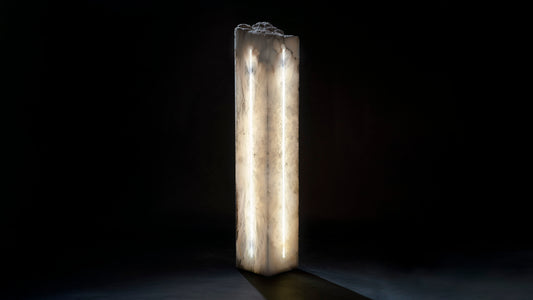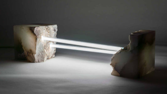 The mediums of neon and stone carry and communicate this ethereal epilogue as they are not commonly found together terrestrially. The glow from the noble gas illuminates the minerality within the stones, as swirls of interstellar matter.