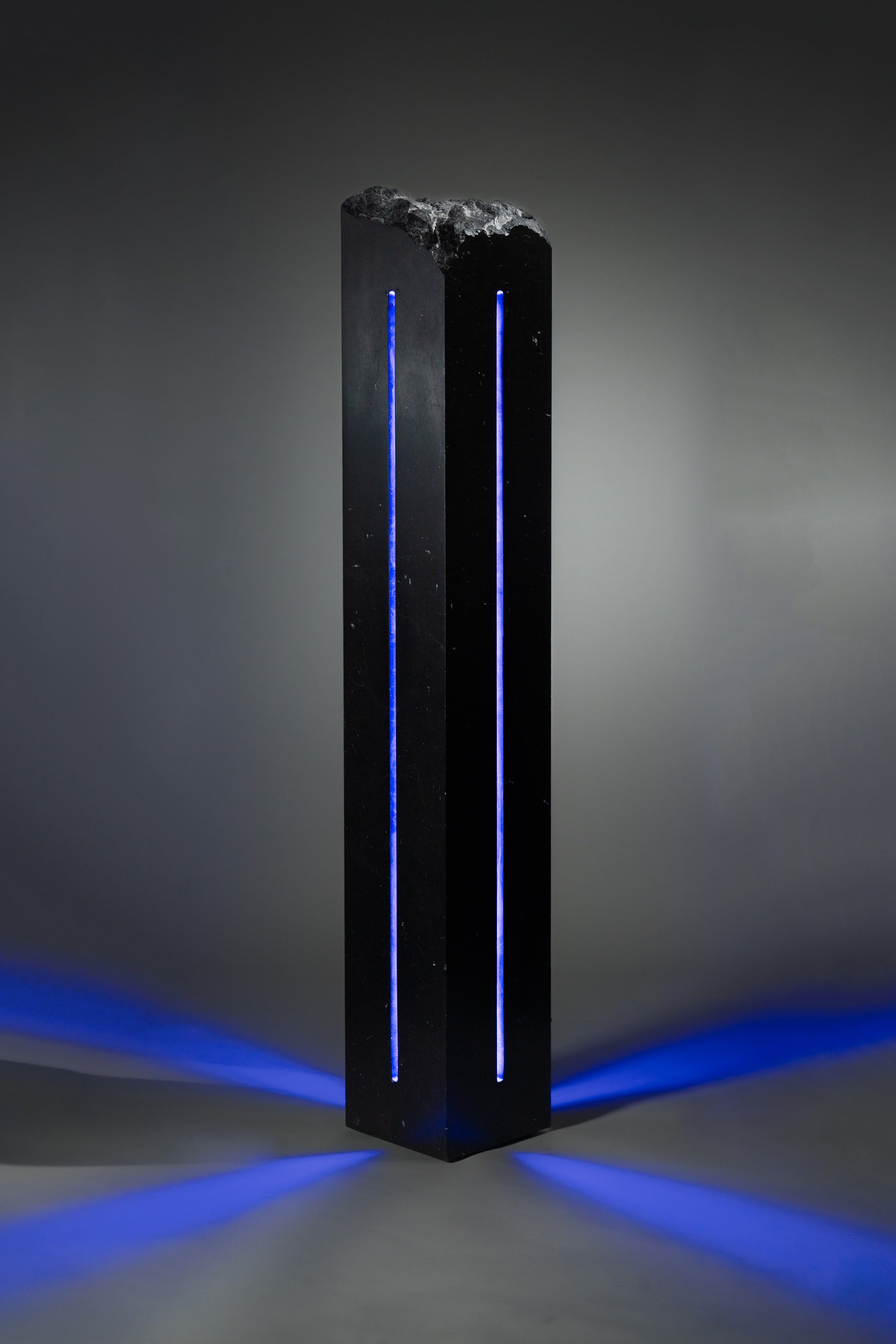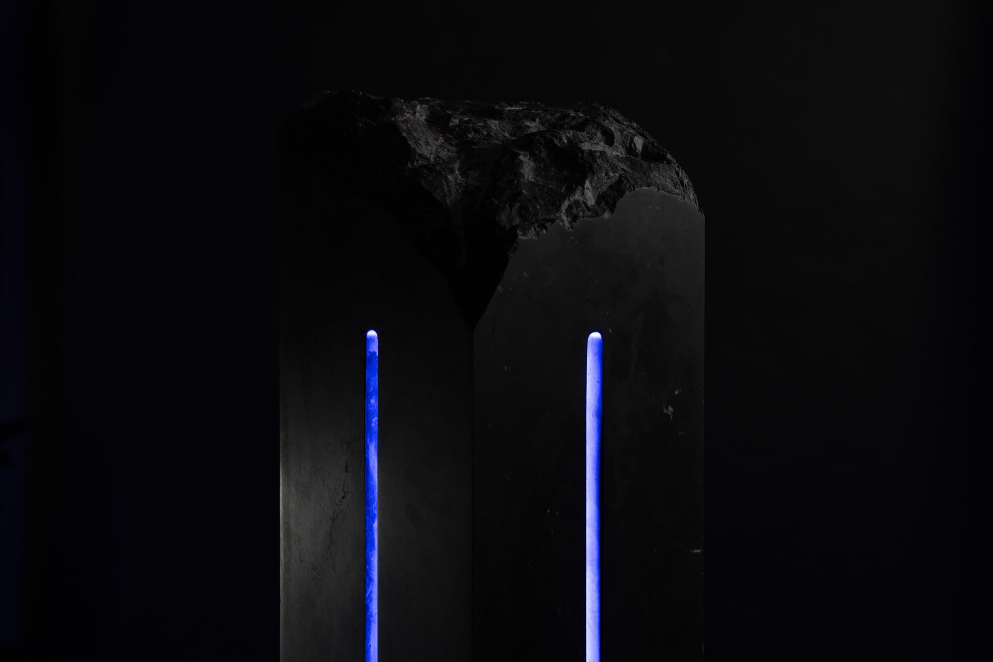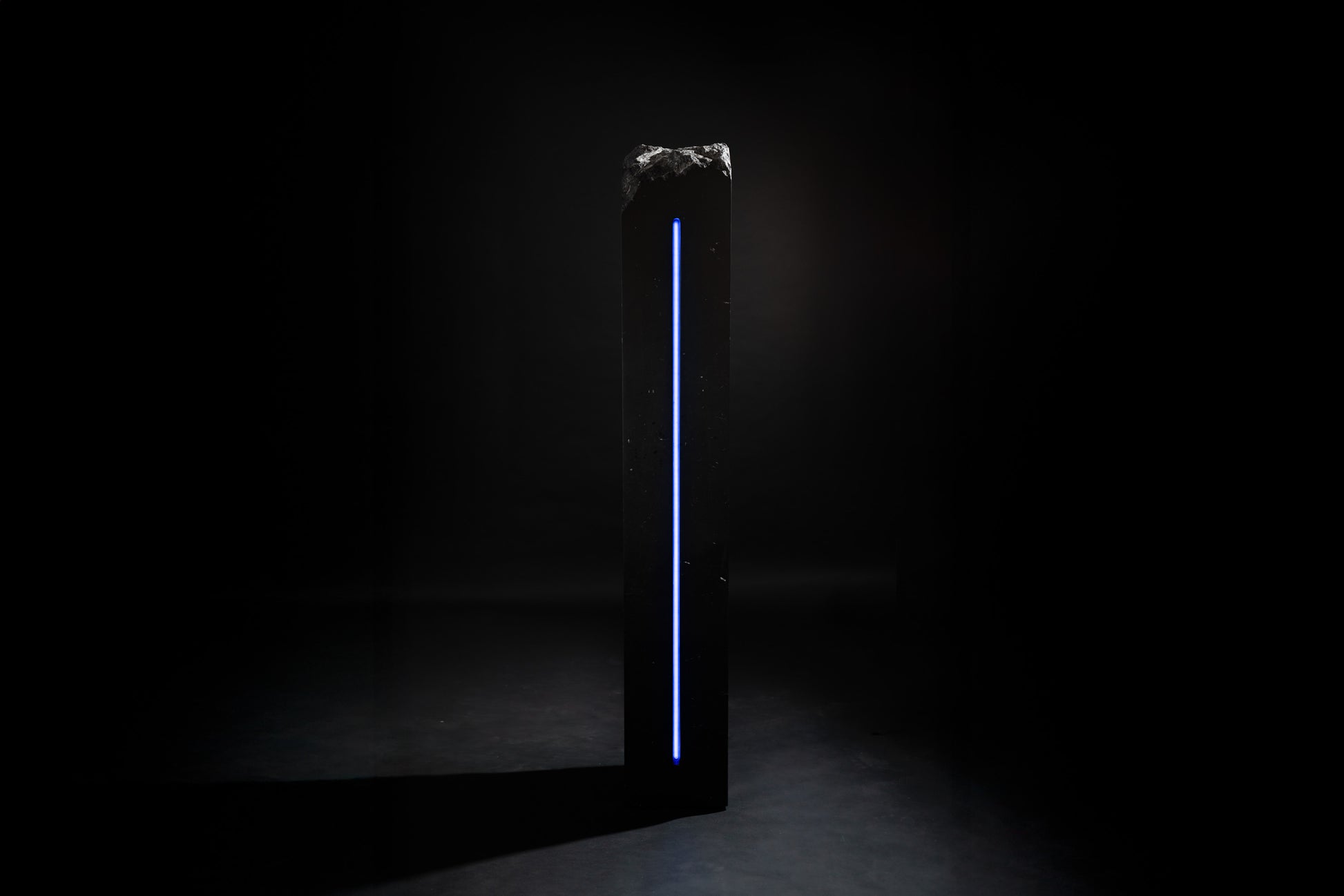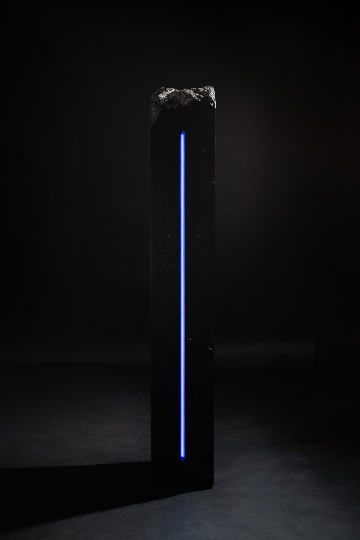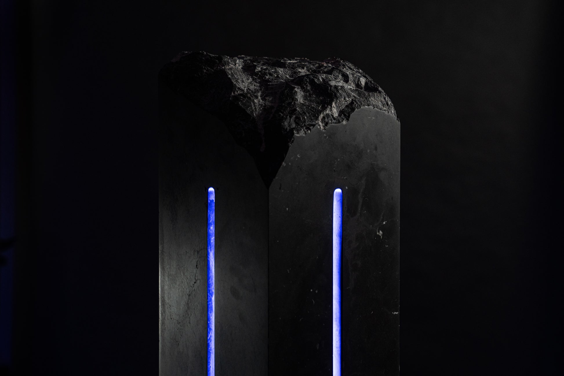 Named for the Titaness of the night sky and falling stars, Asteria represents the boundary between darkness and light. The matte finish on the black marble scattered with fossils reveals its form slowly in the darkness. The work stands as an imagined relic of an ancient cosmology, where stone, light, and time were once aligned, and as a mechanism for us to experience these elements today in our own lives.
