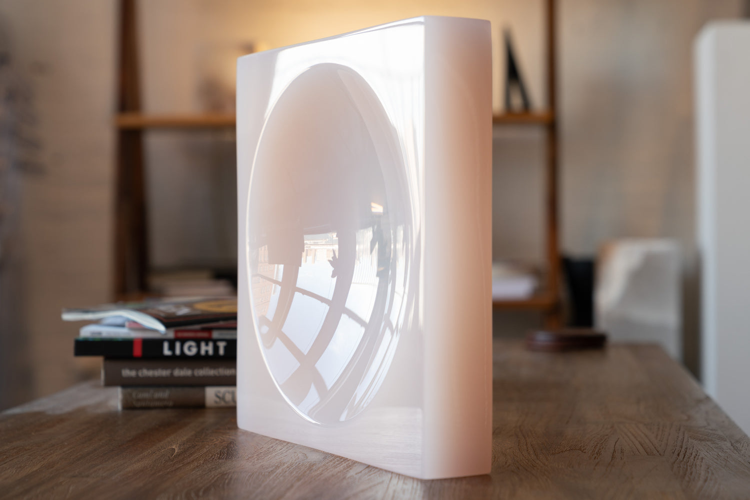 The mini parabola series are a artifacts of color tests in resin for the larger scale parabola works