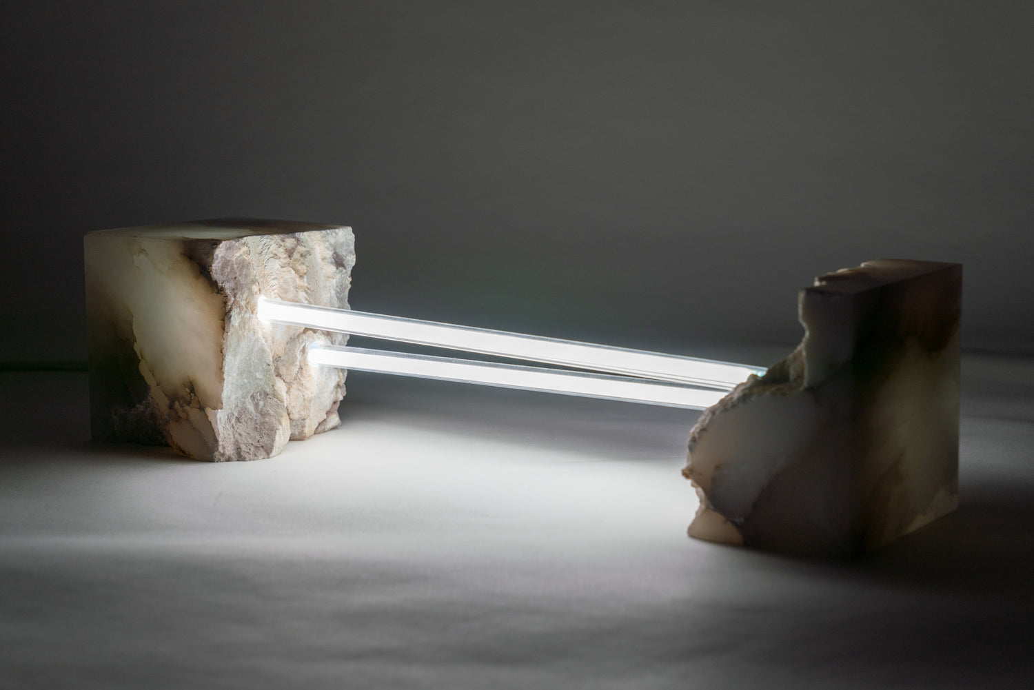 Italian Alabaster and triphospor coated glass filled with argon and mercury ("neon")