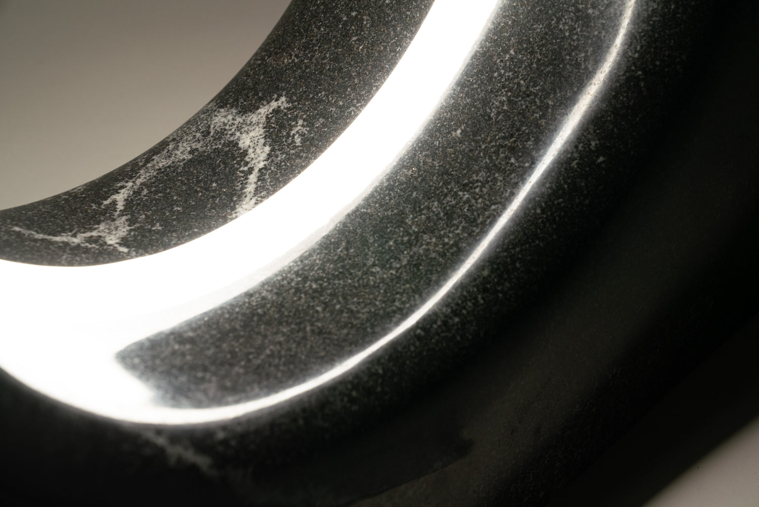In carving this piece ‘Iapetus’ during the pandemic I was forced to venture away from my familiarity with alabaster into the challenging territory of granite, some of the hardest stone on earth.