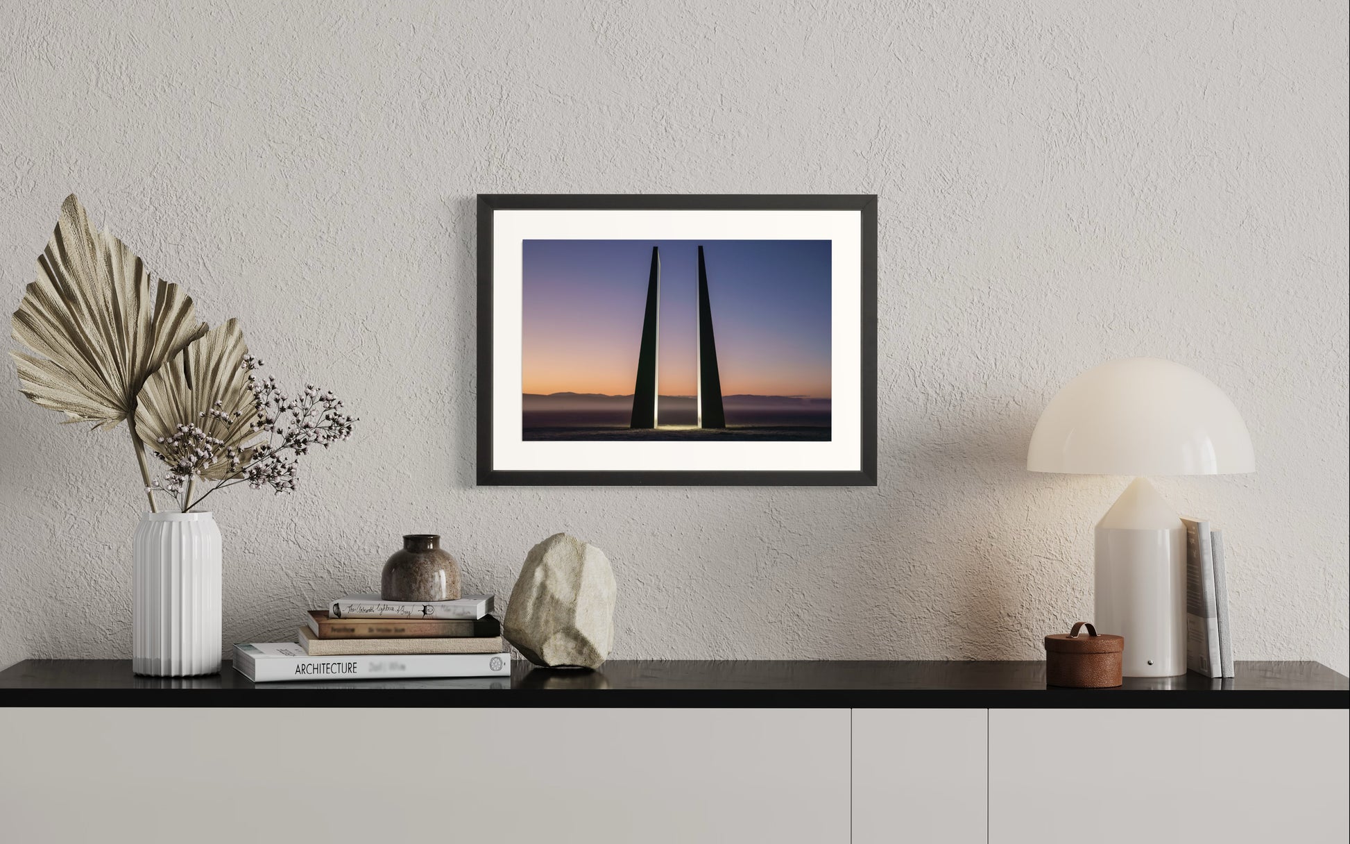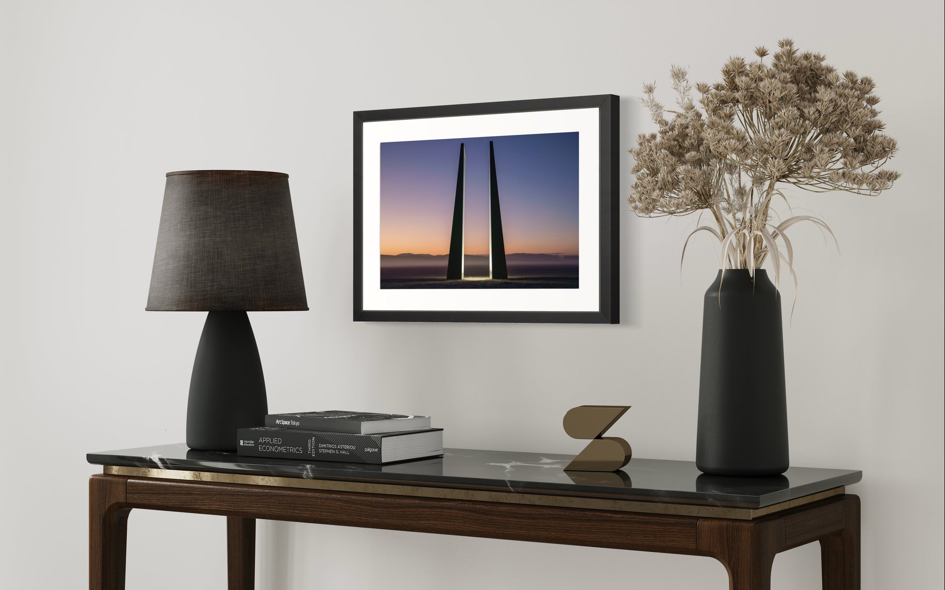 Photo is printed on archival quality paper, framed with a modern and durable 1" wide metal black frame and covered with acrylic.